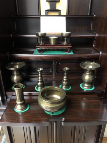 日常のお手入れ毛バタキ等でほこりを落としたり、柔らかい布で汚れたところを拭いてください。一部商品に金粉・金箔仕上げの部分がありますので、その場所は拭かないでください。大掃除の仕方年に3回から4回(お盆・お彼岸・暮れ)は、大掃除をしましょう。*取付けた仏具(吊灯篭・家紋等)以外は、全部外に出してください。*彫刻部分は傷めないように注意しながら、ハケでお掃除しましょう。*毛バタキでほこりを払ったり...