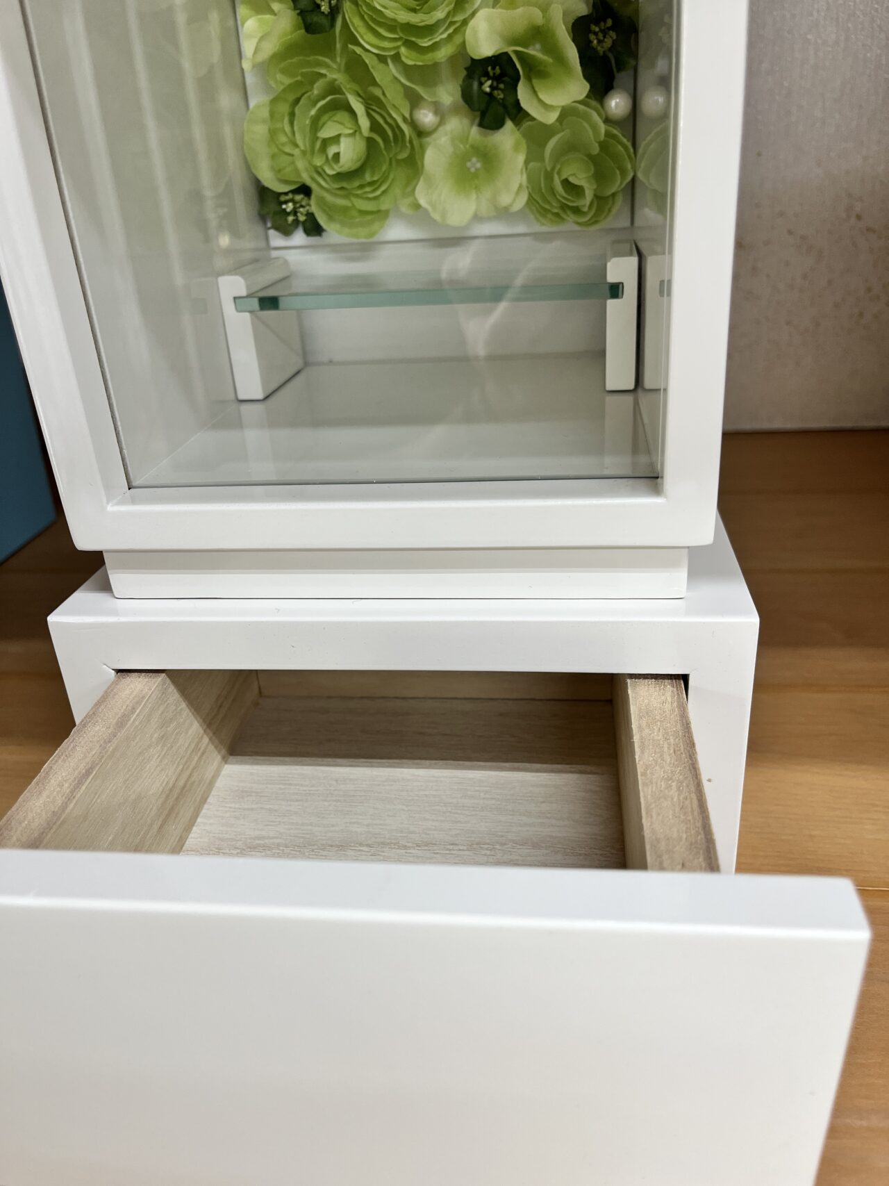 手元供養壇ホワイト 2021.03.24 パーソナル仏壇仏壇 価格 ¥81,400 商品詳細 高さ 31.5cm 幅 16cm 奥行 16.8cm(本体) 高さ9.1cm 幅 18cm 奥行 18.5cm(下台) オンラインでの購入はこちら ◆大切な人のお位牌をパーソナルな形でご供養したい方に 色・材質:ホワイト / 主芯材 MDF 日本製です